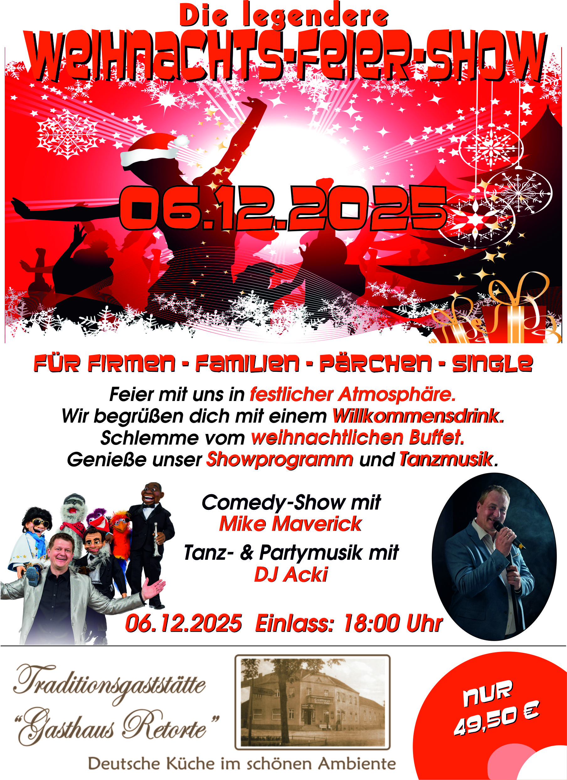 News Hier erhalten Sie einen Überblick der aktuelle Beiträge, nächsten Termine und Auftritte von Mike Maverick. Comedy-Brunch zum 1. Advent Tiketvorverkauf 25.10.2025 Oktoberfest in Premnitz Tiketvorverkauf 06.12.2025 Die Weihnachtsfeiershow Tiketvorverkauf